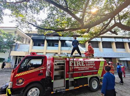 KRAKATAU.ID, BANDAR LAMPUNG – Respons cepat Dinas Pemadam Kebakaran Kota Bandar Lampung berhasil mencegah meluasnya kebakaran di Wisma Santo Albertus, kawasan Rawa Laut, Kecamatan Enggal, Sabtu (27/5). Api yang membakar aula lantai dua gedung tersebut berhasil dipadamkan hanya dalam waktu 10 menit setelah petugas tiba di lokasi.