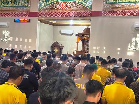 Sebagai bentuk Solidaritas dan Umat muslim, Kapolda Lampung bersama PJU serta masyarakat di Lingkungan Polda Lampung menggelar salat gaib di sertai doa untuk Almarhum Afan Kurniawan.